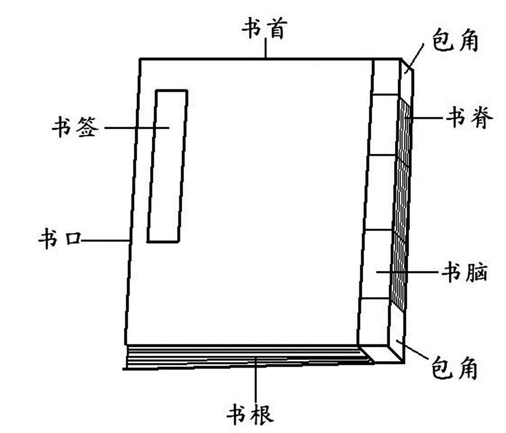 書首、書根、書脊、書口是指書的四周部分。包角是對(duì)那些比較珍貴的書,在裝訂時(shí)用湖色或者藍(lán)色的綾子將書角包起來(lái),起到保護(hù)的作用。在江南,許多藏書家往往不用包角,因?yàn)槿菀咨x。書簽或是紙制的,也有用絲織品的,用來(lái)題寫書名。有的書簽會(huì)特請(qǐng)名家書寫,顯得美觀典雅。