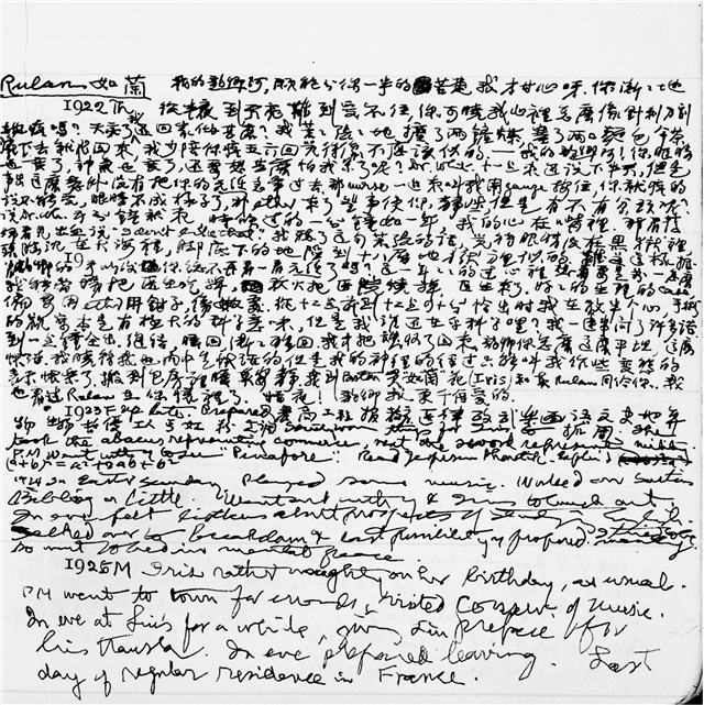 日記第10冊內(nèi)文,1922年趙元任的第一個女兒趙如蘭誕生,4月20日他寫了一篇長長的日記表達(dá)對妻子女兒的愛。