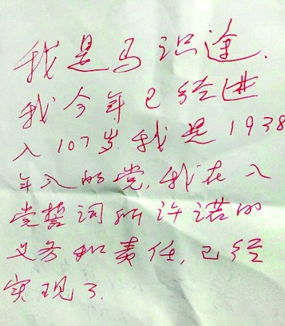 我是馬識途,我今年已經(jīng)進(jìn)入107歲。我是1938年入的黨,我在入黨誓詞所許諾的義務(wù)和責(zé)任,已經(jīng)實現(xiàn)了。