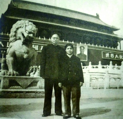 1960年,馬識途與女兒吳翠蘭在天安門廣場合影。