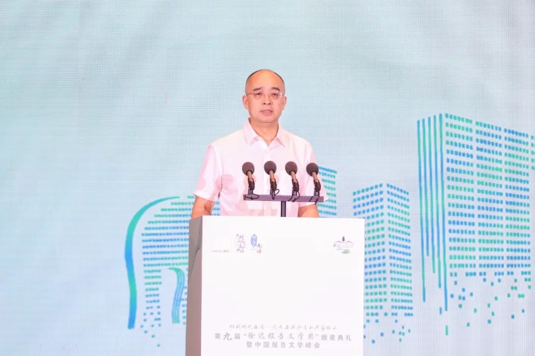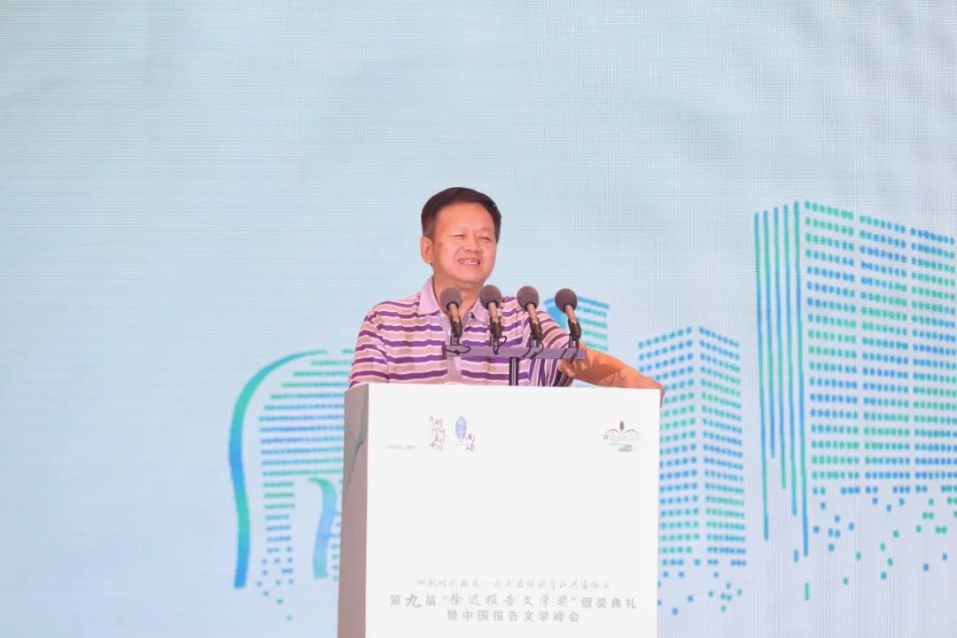 吳義勤代表中國(guó)作家協(xié)會(huì)向獲獎(jiǎng)作家表示祝賀,對(duì)湖州市委市政府和南潯區(qū)委區(qū)政府長(zhǎng)期以來(lái)對(duì)文學(xué)事業(yè)的支持表示感謝。他說(shuō),徐遲報(bào)告文學(xué)獎(jiǎng)的創(chuàng)辦既是為了向徐遲先生致敬,也是為了推動(dòng)中國(guó)報(bào)告文學(xué)事業(yè)的持續(xù)繁榮,促進(jìn)報(bào)告文學(xué)人才成長(zhǎng)。本次獲獎(jiǎng)作品充分體現(xiàn)了近年來(lái)中國(guó)報(bào)告文學(xué)創(chuàng)作的視野之廣、內(nèi)涵之深,充分彰顯了報(bào)告文學(xué)創(chuàng)作在思想性、藝術(shù)性、可讀性等方面的可喜進(jìn)步。希望廣大報(bào)告文學(xué)作家繼承弘揚(yáng)徐遲先生開(kāi)創(chuàng)的報(bào)告文學(xué)創(chuàng)作優(yōu)良傳統(tǒng),學(xué)習(xí)發(fā)揚(yáng)徐遲先生與時(shí)代同心同行的精神和孜孜以求、精益求精的精神,以更多具有中國(guó)特色、中國(guó)風(fēng)格、中國(guó)氣派的優(yōu)秀報(bào)告文學(xué)作品回應(yīng)時(shí)代的要求,積極推動(dòng)新時(shí)代報(bào)告文學(xué)創(chuàng)作高質(zhì)量發(fā)展。