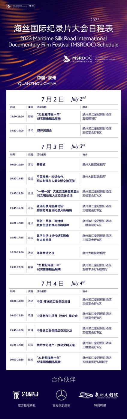 據(jù)悉,2023海絲國際紀(jì)錄片大會(huì)有兩大特點(diǎn):第一,國際合作。作為國內(nèi)聚焦國際交流合作、打造高質(zhì)量紀(jì)錄片推介的節(jié)展,大會(huì)作品集展映、項(xiàng)目推薦、主題研討、文化體驗(yàn)于一體,此次大會(huì)共邀請(qǐng)到7位國際A類紀(jì)錄片節(jié)展主席、12個(gè)國家電視臺(tái)制播機(jī)構(gòu)代表共同參與,開展活動(dòng)7大類、15場(chǎng),其中包括5個(gè)國際合拍項(xiàng)目合作意向簽署儀式、11個(gè)中外制作中項(xiàng)目(WIP)提案,還有19部中外精品紀(jì)錄片展映。大會(huì)充分對(duì)接中外紀(jì)錄片制播節(jié)展資源,增進(jìn)中外創(chuàng)作者交流,促進(jìn)紀(jì)實(shí)影像的國際合作。第二,海絲特色。泉州作為聯(lián)合國教科文組織唯一承認(rèn)海上絲綢之路起點(diǎn)城市,大會(huì)落地泉州,充分融合了各種泉州要素,如以泉州為主題的紀(jì)錄片為案例探討文化遺產(chǎn)保護(hù)的論壇活動(dòng)、海絲世遺之夜、發(fā)現(xiàn)海絲人文之旅、國際傳媒人士調(diào)研、泉州非遺展示互動(dòng)區(qū)等,讓海內(nèi)外嘉賓沉浸體驗(yàn)宋元中國世界海洋貿(mào)易中心的魅力。