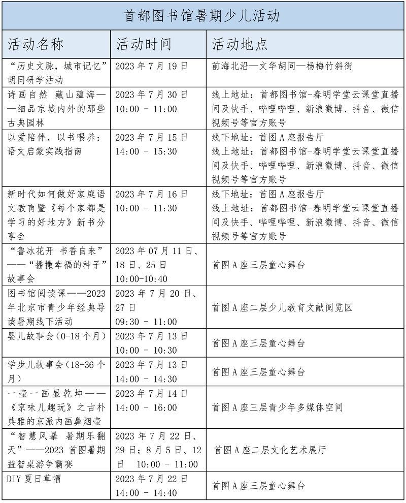 少兒活動看哪里?來首都圖書館樂讀童年夏日
