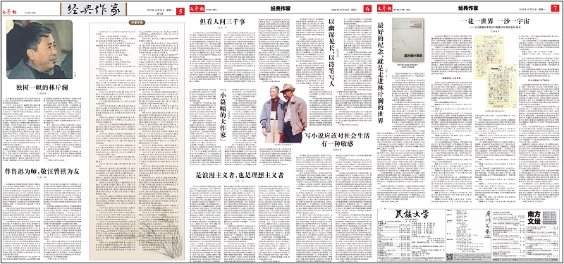 經(jīng)典的魅力在于偉大作家們的創(chuàng)作實踐、人生歷程、理念哲思和學(xué)術(shù)思想,蘊含著豐贍而持久的闡釋可能與意義空間。“指窮于為薪,火傳也,不知其盡也?!睘榻恿Τ欣m(xù)五四以來的新文學(xué)光榮傳統(tǒng),展示當(dāng)代文學(xué)成就與經(jīng)驗,弘揚經(jīng)典作家的當(dāng)代價值,本報決定重啟“經(jīng)典作家??保悦科谒膫€版的容量,以“作家印象”“文學(xué)地理”“重讀經(jīng)典”“文史鉤沉”“學(xué)術(shù)視野”“域外傳真”等專欄,深入體察作家和作品背后的歷史緣由,重新發(fā)現(xiàn)與考辨豐富復(fù)雜的史料細(xì)節(jié),以富于學(xué)理和學(xué)術(shù)性的文字,繼續(xù)向各界讀者揭示中國現(xiàn)當(dāng)代文學(xué)名家熠熠生輝的持久魅力,為當(dāng)代文學(xué)創(chuàng)作提供更多營養(yǎng),向全社會彰顯更多屬于文學(xué)的精神感召和審美力量,為建設(shè)文化強國發(fā)光發(fā)熱。