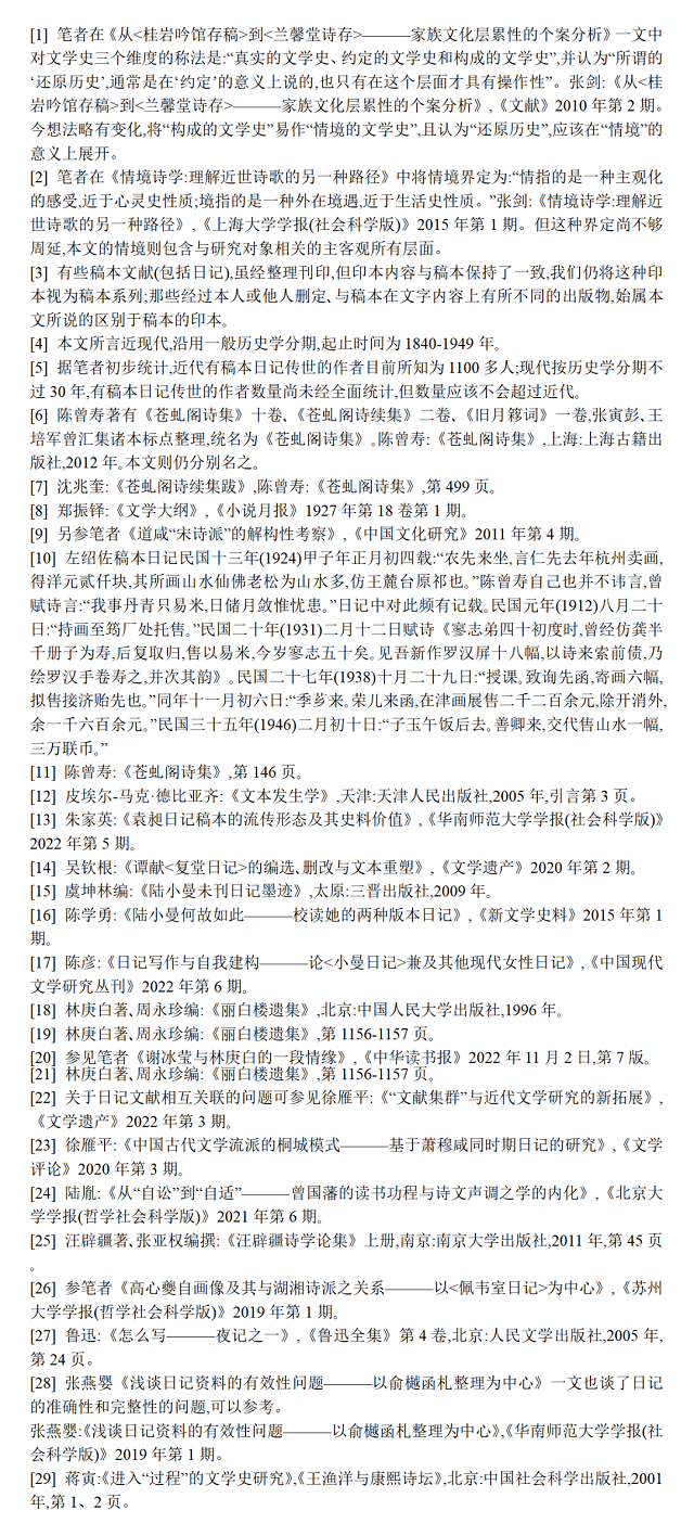 雖然近現(xiàn)代之前,由于史料遺存相對(duì)較少,稿本日記更難獲得,情境文學(xué)史的建構(gòu)會(huì)有諸多困難。即便如此,其研究亦可借助從近現(xiàn)代稿本日記中獲得的經(jīng)驗(yàn),反推或模擬自身的情境文學(xué)史,將文獻(xiàn)碎片努力拼合為歷史的整體圖景,這同樣是值得肯定和嘗試的一種學(xué)術(shù)路徑。