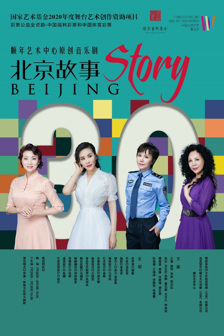 音樂劇《北京故事》由順年文化傳播(北京)有限公司和順年藝術(shù)中心聯(lián)合出品制作,是彩票公益金資助—中國福利彩票和中國體育彩票、國家藝術(shù)基金2020年度舞臺藝術(shù)創(chuàng)作資助項目,以及中國文學(xué)藝術(shù)發(fā)展專項基金資助項目。作為一部以現(xiàn)代城市故事為題材并命名的原創(chuàng)音樂劇,該劇以概念音樂劇的創(chuàng)作手法,刻畫了一組中年女性的群像,講述了四位北京大妞兒由一個30年前的約定,引出一場30年后的歡喜相聚。四幀中年女性的人生快閃,呈現(xiàn)了她們?yōu)楦?0年之約所展開的一系列關(guān)于事業(yè)、愛情和生活的故事。