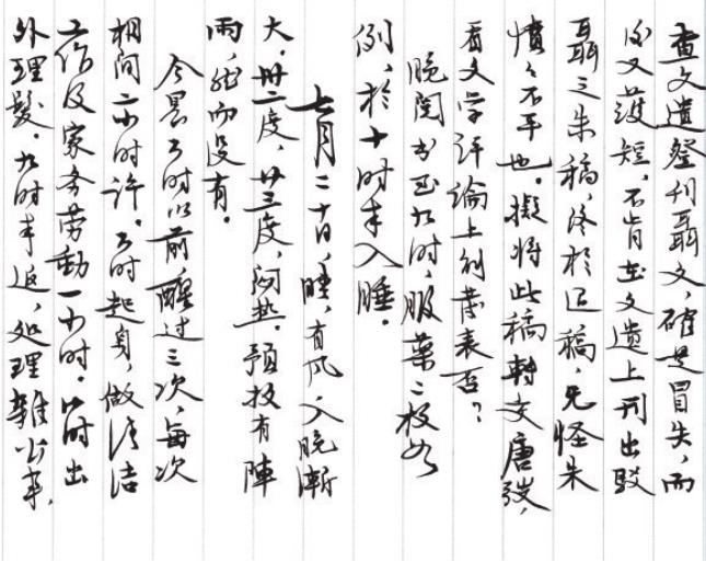 1963年7月19日茅盾日記手稿第3頁,內(nèi)文有“擬將此稿轉(zhuǎn)交唐弢”