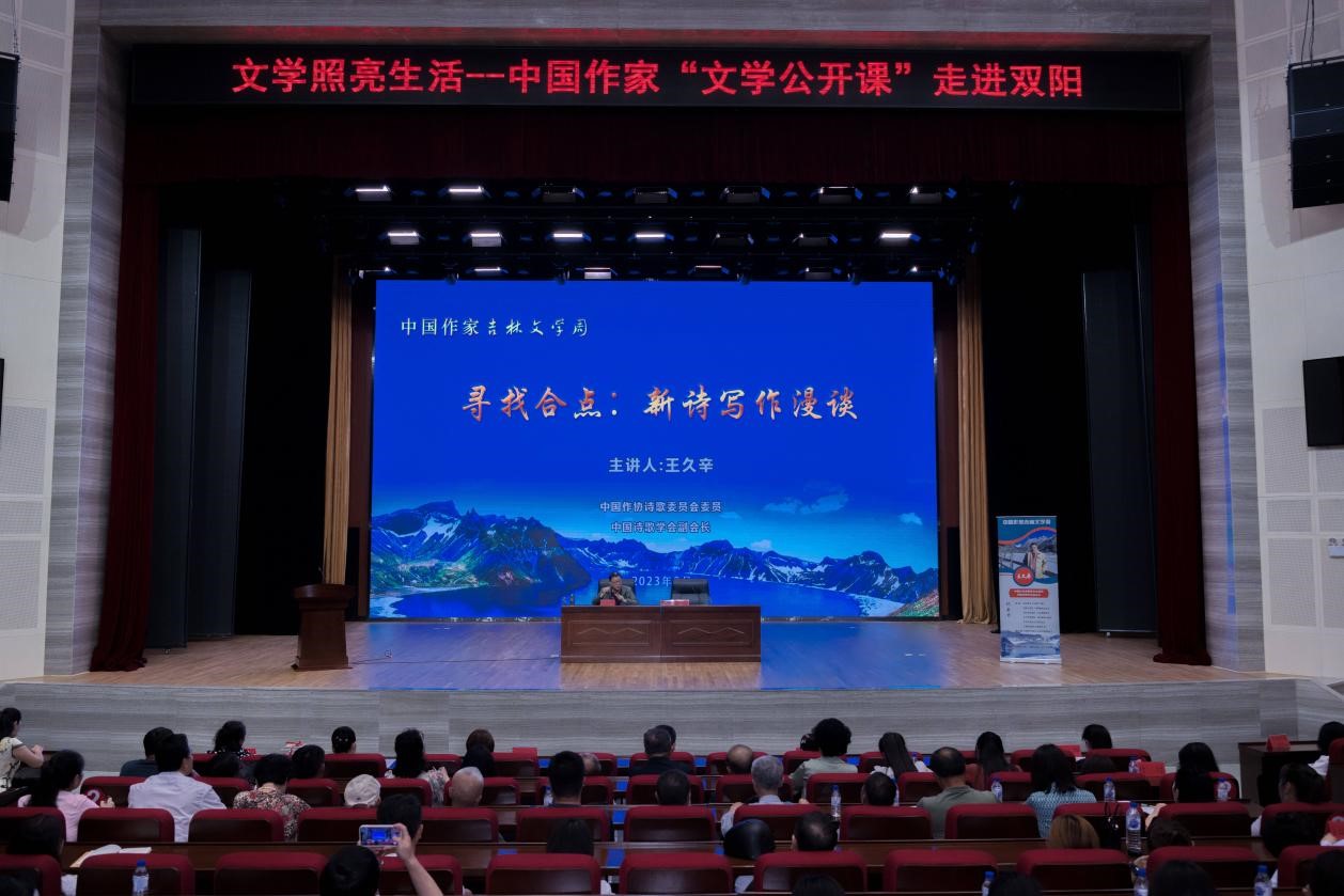 在長(zhǎng)春雙陽(yáng)區(qū)委黨校大教室,王久辛以“尋找合點(diǎn):新詩(shī)寫(xiě)作漫談”為題,結(jié)合個(gè)人創(chuàng)作經(jīng)歷,向現(xiàn)場(chǎng)的文學(xué)愛(ài)好者們闡釋了新詩(shī)創(chuàng)作如何尋找“合點(diǎn)”、怎樣就“合點(diǎn)”寫(xiě)出有爆發(fā)力的好作品等話題,并分享了自己在詩(shī)歌創(chuàng)作中的感悟和體會(huì)。他以自己創(chuàng)作長(zhǎng)詩(shī)《朱凡》《大地夯歌》《零刻度》《肉搏的大雨》《初戀杜鵑》時(shí)的創(chuàng)作歷程為切入點(diǎn),指導(dǎo)大家在詩(shī)歌創(chuàng)作中要注重“寫(xiě)境”和“造境”,并把修辭和邏輯作為詩(shī)歌創(chuàng)作的基本功。大家就詩(shī)歌的創(chuàng)作要求、評(píng)判標(biāo)準(zhǔn)以及詩(shī)歌的時(shí)代責(zé)任與擔(dān)當(dāng)?shù)葐?wèn)題提問(wèn),王久辛一一給予解答,并鼓勵(lì)文學(xué)愛(ài)好者們要立足本土文學(xué),堅(jiān)定文化自信,創(chuàng)作出具有地域特色、彰顯文化擔(dān)當(dāng)?shù)募炎鳌?/p>