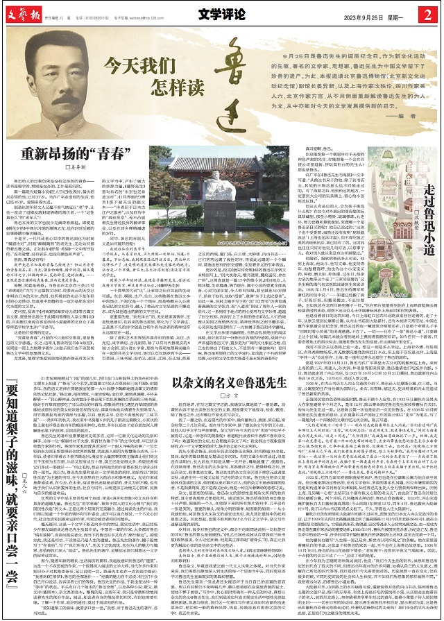 9月25日是魯迅先生的誕辰紀念日。作為新文化運動的先驅(qū),著名的文學(xué)家、思想家,魯迅先生為中國文學(xué)留下了珍貴的遺產(chǎn)。為此,本報邀請北京魯迅博物館(北京新文化運動紀念館)副館長姜異新,以及上海作家沈軼倫、四川作家羌人六、北京作家方言,從不同側(cè)面重新解讀魯迅先生的為人為文,從中亦能對今天的文學(xué)發(fā)展提供新的啟示。