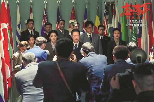 全片的新意還體現(xiàn)在著力設(shè)置一系列細(xì)節(jié),在場景和人物性格的深描上取得實效。深描,意味著不是浮光掠影式的淺層描寫,而是深刻的、富于穿透力的深度意義構(gòu)建。下面這些細(xì)節(jié)確實具有深描的力量:從麥克阿瑟在戰(zhàn)場上用白手巾擦皮鞋的細(xì)節(jié),可見出其狂妄和剛愎自用的性格;透過毛澤東與林巧稚在天安門城樓有關(guān)生命的對話,可知領(lǐng)袖的戰(zhàn)略決策有著深厚的民間輿論支撐;毛岸英臨行前同繁忙父親的隔窗遠(yuǎn)望式道別鏡頭,傳達(dá)出領(lǐng)袖之子與民同甘共苦的意涵;由毛岸英細(xì)心開導(dǎo)小楊到后者主動為前者修鞋,強(qiáng)化上述同甘共苦意涵;彭德懷的孤軍勇闖敵軍封鎖線、怒斥梁興初貽誤戰(zhàn)機(jī)、發(fā)出“38軍萬歲”的心聲等細(xì)節(jié),刻畫出“彭大將軍”的威風(fēng);松骨峰“鐵三角”戴如義、楊少成、孫醒之間有關(guān)誰活著就把連隊帶回的商議鏡頭,凸顯我軍團(tuán)結(jié)奮戰(zhàn)和前仆后繼的光榮傳統(tǒng);伍修權(quán)在首次出席聯(lián)合國大會前夕讓譯員唐笙仔細(xì)核對國家名牌的英文翻譯,透露出新中國初登世界舞臺的莊重和嚴(yán)謹(jǐn);他繼而在演講中揮拳拍桌子,表現(xiàn)了我方的自信和自強(qiáng);松骨峰上虛擬出的一棵松造型,可以有效地滿足觀眾看到此景時油然而生的敬仰英雄之情懷。透過這些細(xì)節(jié),毛澤東的雄才大略、毛岸英的純真善良和平易近人、彭德懷的英勇無畏和粗中有細(xì)、梁興初的知恥后勇、松骨峰“鐵三角”的鐵膽忠魂、伍修權(quán)的正義凜然和細(xì)心謹(jǐn)慎等獨特性格特征,宛如浮雕般凸顯出陽剛而壯麗的風(fēng)采。