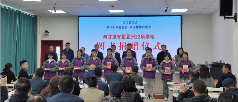 活動期間,中國作協(xié)社聯(lián)部、中華文學(xué)基金會向甘肅省臨夏市、天水市及蘭州市部分中小學(xué)校捐贈圖書,舉辦“育才圖書室”授牌儀式。據(jù)統(tǒng)計,文學(xué)周期間共向甘肅捐贈由作家出版社出版并精心挑選的圖書7萬余冊,總價值約270萬元。