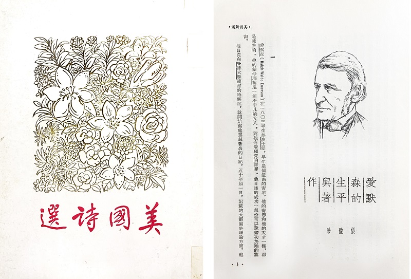 林以亮編選《美國詩選》初版書影;張愛玲在《美國詩選》中譯介愛默森。