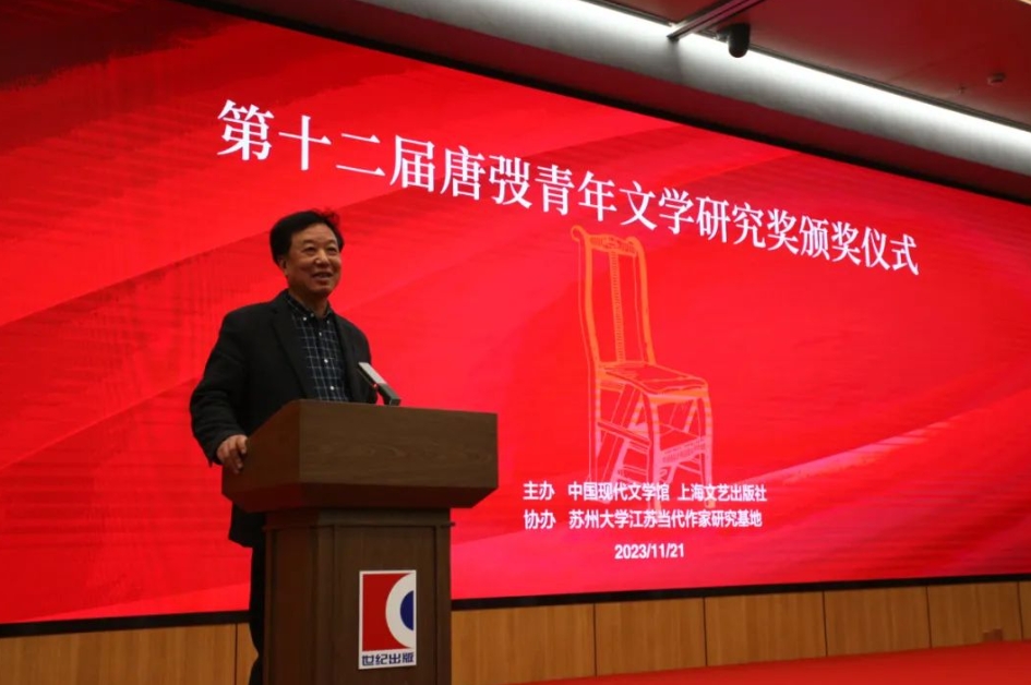 11月21日,第十二屆唐弢青年文學(xué)研究獎?lì)C獎儀式暨唐弢青年文學(xué)研究獎學(xué)術(shù)論壇在上海舉行。中國作協(xié)副主席、中國現(xiàn)代文學(xué)館館長李敬澤,上海市委宣傳部副部長、市電影局局長高韻斐出席活動。復(fù)旦大學(xué)教授陳思和,上海市文聯(lián)副主席、上海市作協(xié)副主席孫甘露,上海世紀(jì)出版集團(tuán)黨委副書記、總裁闞寧輝,上海市作協(xié)黨組書記、專職副主席馬文運(yùn),蘇州大學(xué)教授王堯,上海交通大學(xué)教授吳俊,復(fù)旦大學(xué)教授郜元寶,華東師范大學(xué)教授呂新雨、文貴良、羅崗、毛尖,中國現(xiàn)代文學(xué)館常務(wù)副館長王軍、副館長李宏偉,上海文藝出版社社長、總編輯畢勝等參加活動。活動由中國現(xiàn)代文學(xué)館、上海文藝出版社主辦,蘇州大學(xué)江蘇當(dāng)代作家研究基地協(xié)辦。