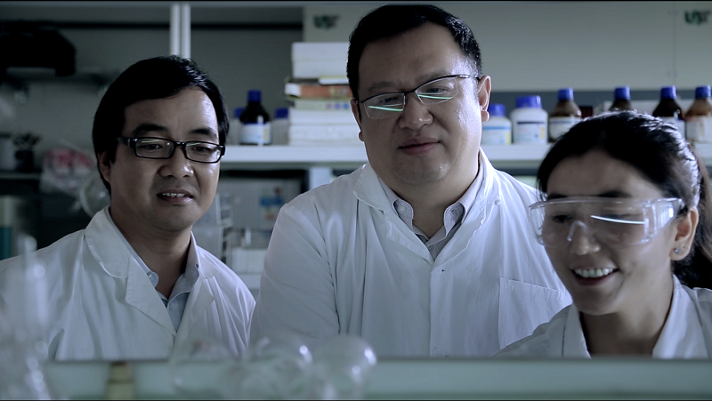 鐘揚(yáng)(中間)和學(xué)生在實(shí)驗(yàn)室