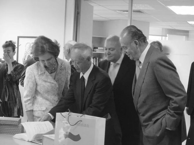 在塞萬提斯學(xué)院,董燕生向西班牙國王和王后展示《堂吉訶德》中譯本