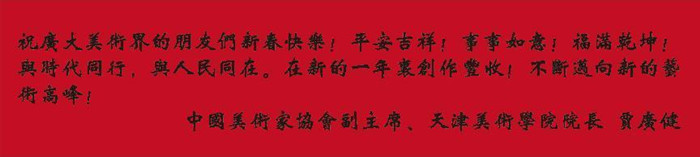 18、中國美術家協會副主席、天津美術學院院長 賈廣健:祝廣大美術界的朋友們新春快樂!平安吉祥!事事如意!福滿乾坤!與時代同行,與人民同在。在新的一年里創(chuàng)作豐收!不斷邁向新的藝術高峰!