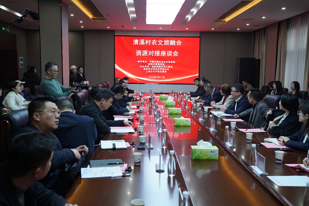 3月17日上午,由中國作協(xié)社聯(lián)部和益陽市委宣傳部作為指導單位的清溪村農(nóng)文旅融合資源對接會,在清溪村游客之家舉行。該會旨在深入貫徹落實習近平總書記重要指示批示精神,助力鄉(xiāng)村振興,建設并宣傳好“文學村莊”典型,讓當?shù)乩习傩障碛懈嗟男腋8泻瞳@得感。老藤、王躍文、王松、李鳳群等著名作家,與來自中宣部文藝局、上海文化產(chǎn)權交易所、中國小說學會、中國丁玲研究會、中國寓言文學研究會、浙江溫州洞頭區(qū)、浙江出版集團數(shù)字傳媒有限公司、鄉(xiāng)創(chuàng)科技集團的代表,同益陽市委市政府及清溪作家書屋村民代表,圍繞文學如何賦能鄉(xiāng)村振興,怎樣擦亮“文學村莊”名片,促進清溪村精神文明與物質(zhì)文明共同富裕等,開展座談。座談會由中國作協(xié)社聯(lián)部主任李曉東主持。