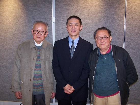 2004年離港回京前,香港著名出版家、三聯(lián)書店前輩藍真(右)、蕭滋(左)先生來為李昕送行。