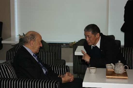 李昕同傅高義先生商談《鄧小平時代》推廣計劃。