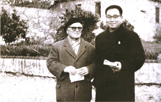 鄭恩波作為《人民日?qǐng)?bào)》記者代表團(tuán)團(tuán)員兼翻譯訪問阿爾巴尼亞費(fèi)里區(qū),與雅科夫·佐澤(左)合影留念 1974年12月3日攝