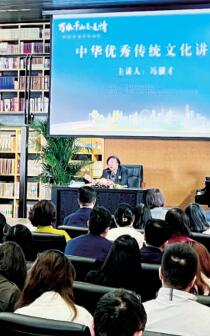 馮驥才“中華優(yōu)秀傳統(tǒng)文化”講座結(jié)束時,在意猶未盡之中,“海河之子”李叔同填詞的《送別》樂曲聲響起,“長亭外,古道邊,芳草碧連天……”在座的作家們紛紛輕聲哼唱起來:“問君此去幾時來,來時莫徘徊……”