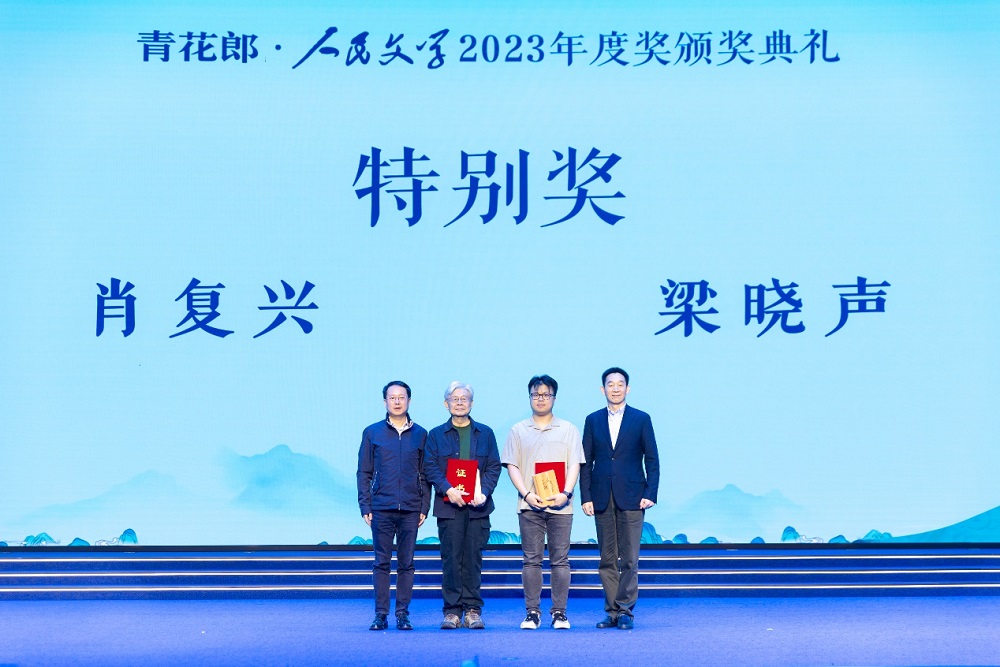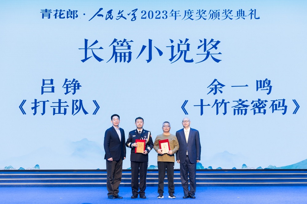據(jù)悉,2023年度人民文學(xué)獎(jiǎng)評(píng)獎(jiǎng)過(guò)程中,吸收了眾多參與“人民閱卷”讀者的意見,再經(jīng)評(píng)委會(huì)專家的專業(yè)評(píng)審,最終,肖復(fù)興、梁曉聲獲特別獎(jiǎng),呂錚《打擊隊(duì)》、余一鳴《十竹齋密碼》獲長(zhǎng)篇小說(shuō)獎(jiǎng),吳君《萬(wàn)事如意》、徐小斌《殺死時(shí)間》獲中篇小說(shuō)獎(jiǎng),了一容《圈馬谷》、湯成難《詠嘆調(diào)》獲短篇小說(shuō)獎(jiǎng),劉文飛《陀思妥耶夫斯基一生的九個(gè)瞬間》、謝有順《嶺南觀鳥記》獲散文獎(jiǎng),向以鮮《蝸?!?、馬累《在黃河邊》獲詩(shī)歌獎(jiǎng),黃傳會(huì)《一飛,再飛》、徐劍《愛(ài)心媽媽》獲非虛構(gòu)作品獎(jiǎng),焦典(短篇小說(shuō)《北師大東門麥當(dāng)勞買不到桃桃烏冰激凌》《長(zhǎng)河夜渡》)、朱婧(短篇小說(shuō)《吃東西的女人》)獲新人獎(jiǎng),許金龍獲翻譯貢獻(xiàn)獎(jiǎng)。