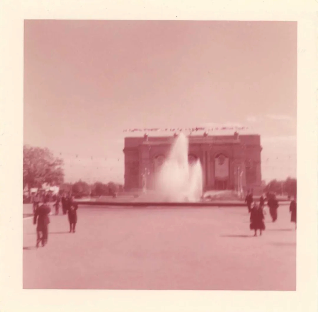 我們一走下飛機(jī),就給熱情的蘇聯(lián)朋友們包圍起來(lái)……在熱鬧聲中,我偷眼看了看機(jī)場(chǎng):是一個(gè)極大極現(xiàn)代化的飛機(jī)場(chǎng)。大型的“圖-104”飛機(jī)在這里從從容容地起飛、降落。候機(jī)室也是極現(xiàn)代的高樓……汽車(chē)開(kāi)進(jìn)城去,是寬闊潔凈的柏油馬路,兩旁種著高大的樹(shù)。樹(shù)蔭下是整齊干凈的人行道。馬路兩旁的房子差不多都是高樓大廈,同莫斯科一般的房子也相差無(wú)幾。中間或間雜著一兩幢具有民族風(fēng)味的建筑。只有在看到這樣的房子的時(shí)候,我心頭才漾起那么一點(diǎn)“東方風(fēng)味”,我才意識(shí)到現(xiàn)在是在蘇聯(lián)東方的一個(gè)加盟共和國(guó)里。[29]
