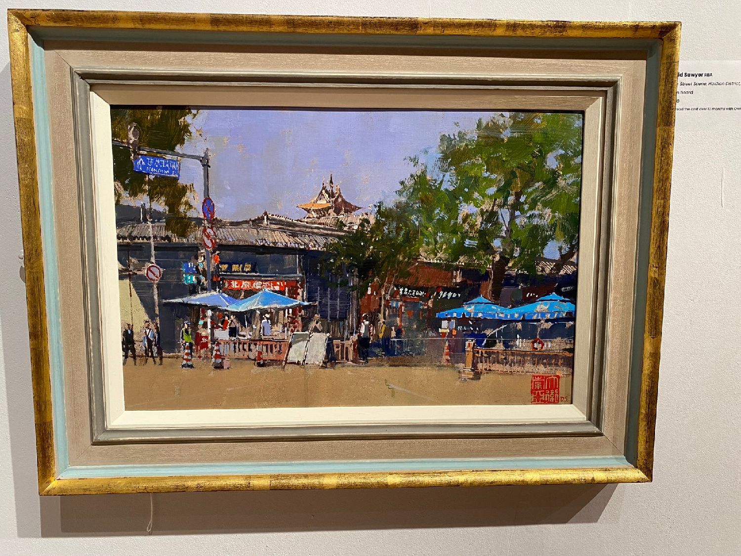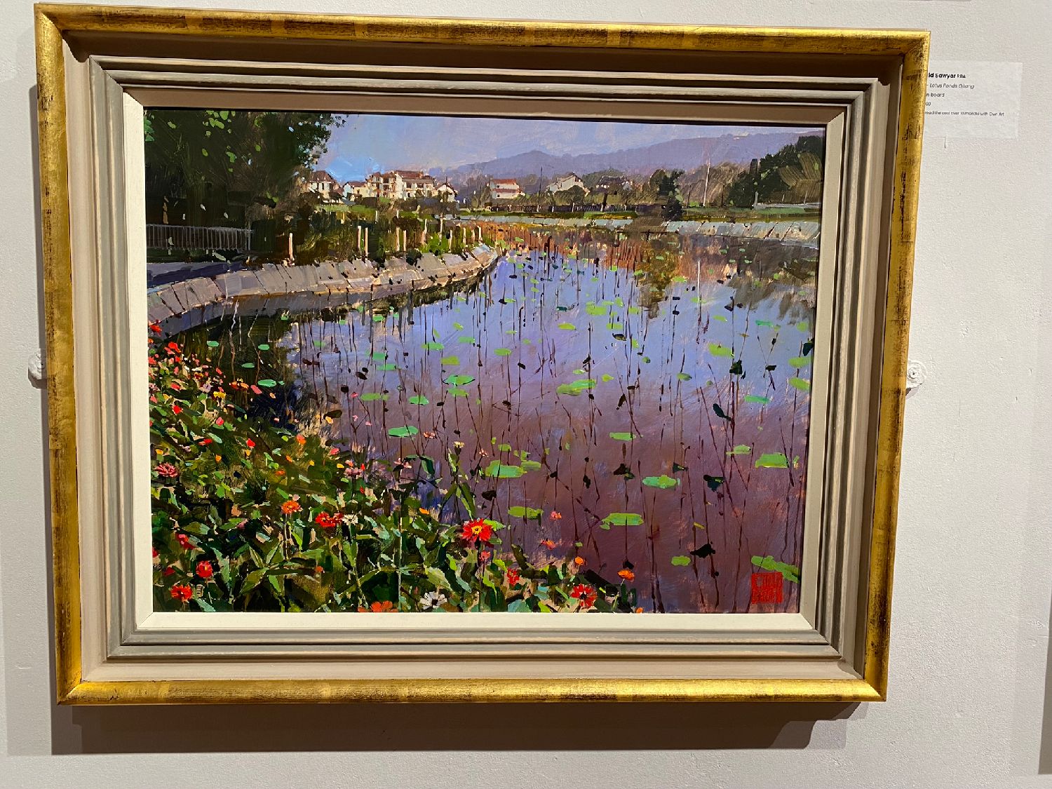 此外,展覽上有繪制故宮、頤和園、重慶郊外荷花池等五幅中國元素的作品引人注意,這是由英國著名現(xiàn)代印象派畫家大衛(wèi)·索亞(David Sawyer)所作,他是英國皇家藝術家學會會員、切爾西藝術協(xié)會會員,作品多次獲獎,并被英國皇室和多家機構收藏,曾作為官方巡回藝術家隨查爾斯王儲(現(xiàn)查理三世國王)夫婦出訪加勒比地區(qū)。