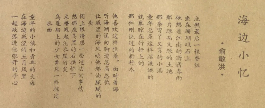 編者按:《詩(shī)歌月刊》編輯整理創(chuàng)刊40周年資料時(shí),在1985年1月6日的《詩(shī)歌報(bào)》(刊物前身)上,看到署名“俞敏洪”的一首詩(shī)作《海邊小憶》,不禁疑惑地問(wèn):這位是否就是新東方的俞老師呢?仔細(xì)一研讀,發(fā)現(xiàn)這一期“校園詩(shī)社”欄目介紹的正是北京大學(xué)五四文學(xué)社。時(shí)間也能對(duì)得上。確定是俞敏洪沒(méi)錯(cuò)了!