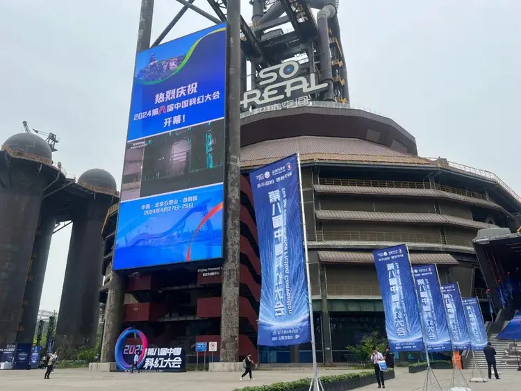 其中既有《三體》《流浪地球2》等耳熟能詳?shù)目苹糜耙暫臀膶W(xué)作品,也有“首鋼一高爐·SoReal科幻樂園”“LED虛擬拍攝制片技術(shù)”等硬核科幻技術(shù)和創(chuàng)新產(chǎn)品。