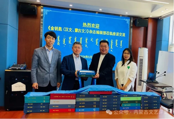 會議最后,《金鑰匙(漢文、蒙古文)》編輯部向內(nèi)蒙古師范大學(xué)蒙古學(xué)學(xué)院贈與《金鑰匙(漢文、蒙古文)》期刊(1981-2023年)合訂本一套。