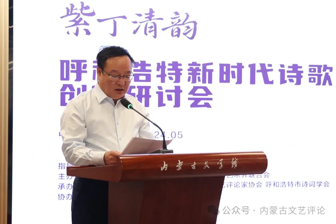 為深入學習貫徹習近平文化思想,推進“北疆文化”建設,充分發(fā)揮文藝評論引導創(chuàng)作、推出精品、提高審美、引領風尚的作用,2024年5月16日,由內(nèi)蒙古文藝評論家協(xié)會、呼和浩特市文聯(lián)共同主辦的“紫丁清韻——呼和浩特新時代詩歌創(chuàng)作研討會”暨北疆文藝大講堂2024年第一期在內(nèi)蒙古文學館舉行。