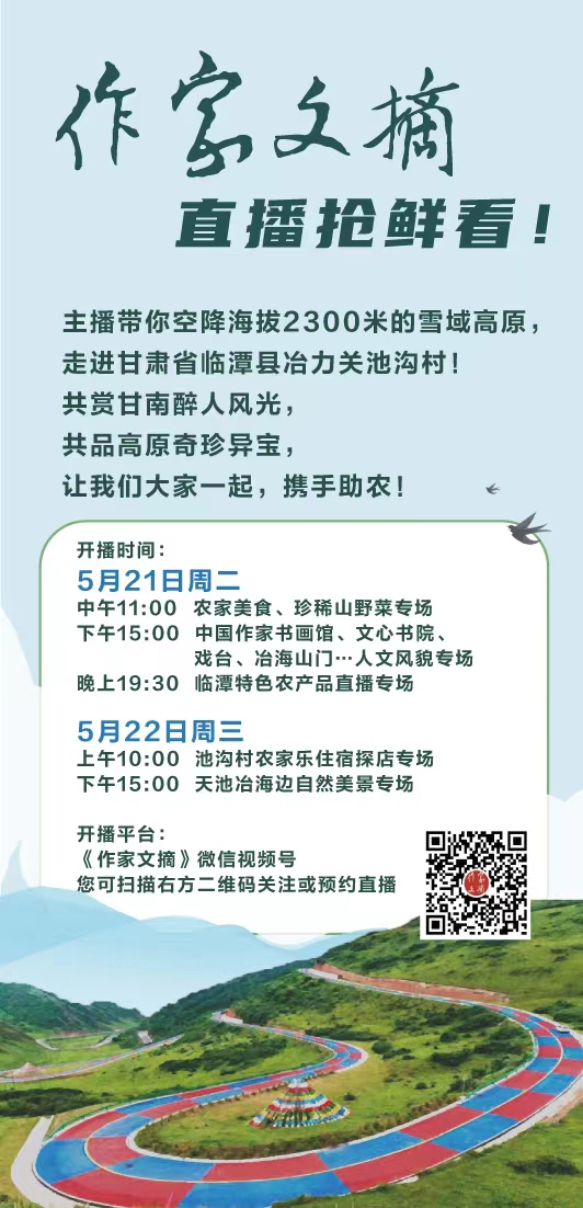 多年來,中國作家出版集團(tuán)所屬文學(xué)出版單位響應(yīng)中國作協(xié)號召,發(fā)揮自身特長,結(jié)合當(dāng)?shù)匚幕?、教育、文旅等鄉(xiāng)村振興發(fā)展需求和出版集團(tuán)資源優(yōu)勢,主動投身定點幫扶。此次活動期間,將組織知名編輯、記者、作家進(jìn)校園,舉辦文學(xué)講座及助學(xué)捐贈活動,組織新媒體主播走進(jìn)派駐第一書記的冶力關(guān)鎮(zhèn)池溝村進(jìn)行助力鄉(xiāng)村農(nóng)文旅發(fā)展直播,深度宣傳臨潭縣特色農(nóng)產(chǎn)品、冶力關(guān)旅游風(fēng)景區(qū)及池溝村鄉(xiāng)村旅游新風(fēng)貌。