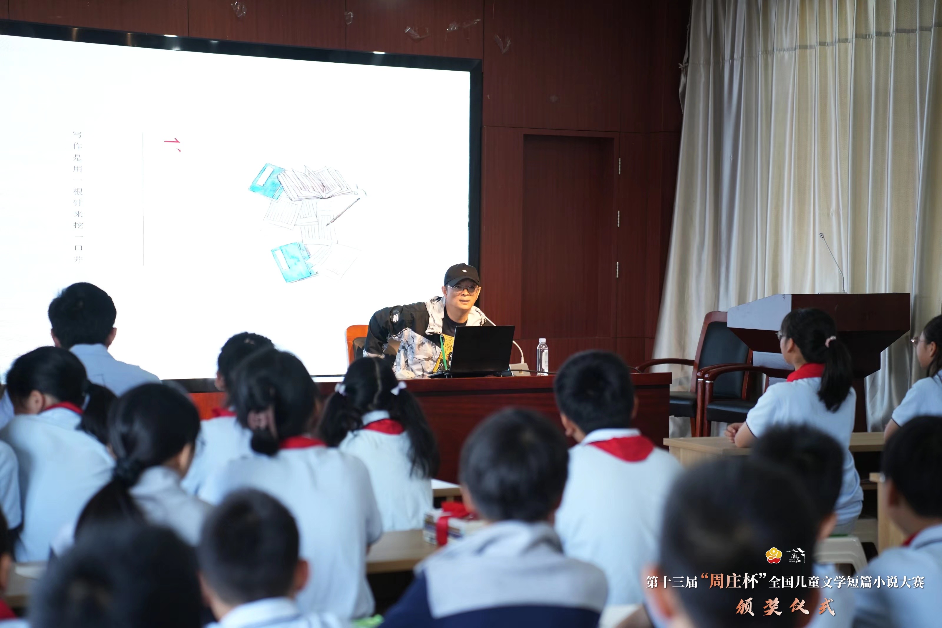 頒獎活動期間,獲獎作家朱云昊、顧正宇、洪永爭、趙詠冰走進(jìn)周莊小學(xué),與孩子們面對面就文學(xué)寫作和閱讀展開座談,分享各自的經(jīng)驗和智慧,為孩子們呈現(xiàn)了優(yōu)秀兒童文學(xué)的獨特魅力。