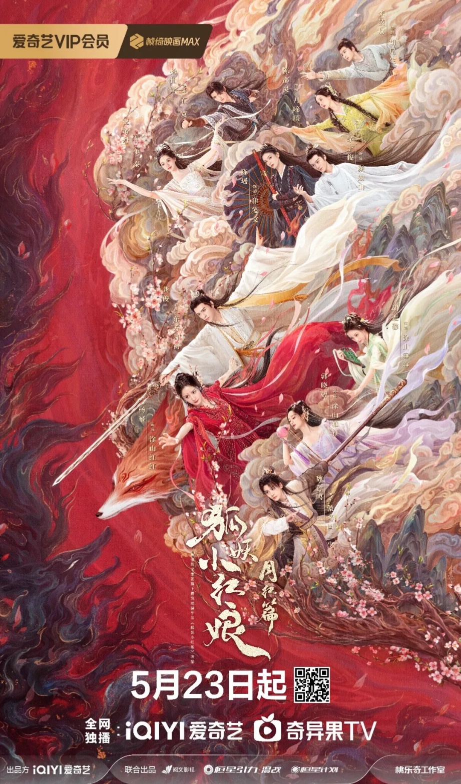 《狐妖小紅娘月紅篇》定檔5月23日愛奇藝全網(wǎng)獨播。該劇由愛奇藝、閱文影視、恒星引力聯(lián)合出品,恒星引力制作,愛奇藝桃樂奇工作室打造,是愛奇藝“狐妖小紅娘”系列的首部作品。《狐妖小紅娘月紅篇》講述了涂山狐族當家涂山紅紅與東方家族后人東方月初相遇并漸生情愫,兩人為守護心愛之人并維系兩族和平歷經(jīng)磨難和取舍的故事。該劇由戴瑩、王一栩、張宇成擔任總制片人,麥貫之、杜林導演,楊冪、龔俊領銜主演,郭曉婷、魏哲鳴、胡連馨、溫崢嶸特別主演,祝緒丹、楊仕澤、陳瑤、茅子俊、陳都靈特別出演,張凌赫友情客串出演。