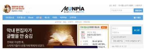 韓國網(wǎng)絡(luò)文學(xué)網(wǎng)站MUNPIA(文托邦)首頁截圖