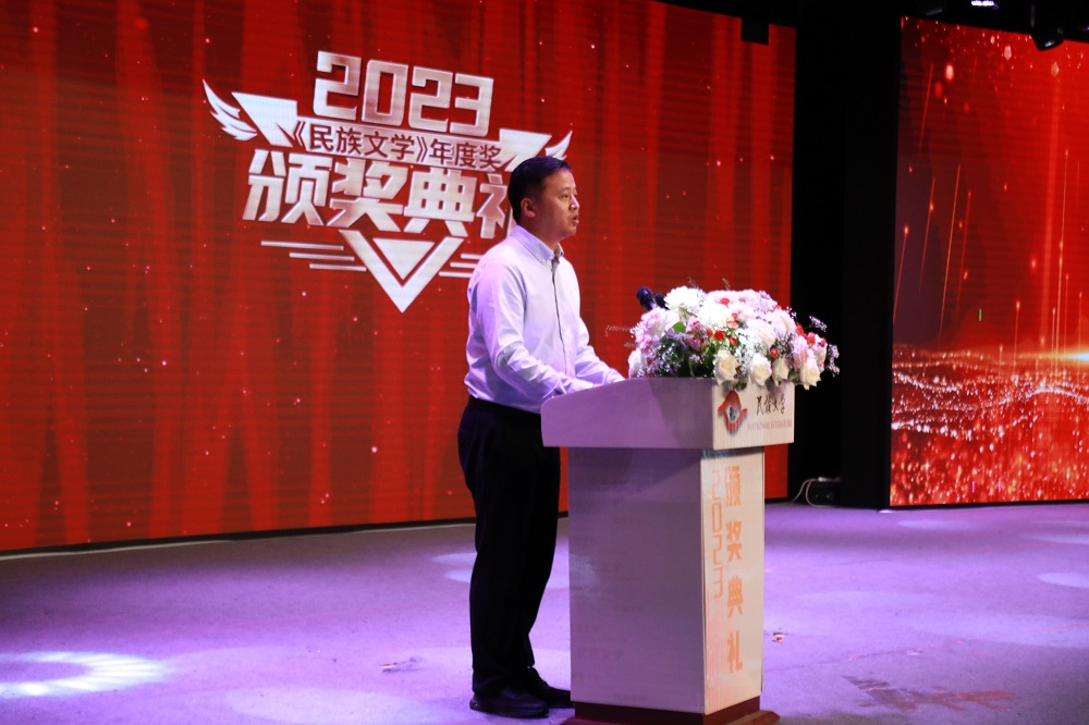 李一鳴在講話(huà)中指出,作為國(guó)家級(jí)民族文學(xué)期刊,《民族文學(xué)》創(chuàng)刊43年來(lái),培養(yǎng)壯大民族作家隊(duì)伍,展現(xiàn)了多民族文學(xué)的豐沛活力和多彩光芒,為民族文學(xué)的繁榮發(fā)展作出重要而獨(dú)特的貢獻(xiàn);《民族文學(xué)》年度獎(jiǎng)設(shè)立十多年以來(lái),推出了一大批具有民族風(fēng)格、中華氣派、世界眼光、百姓情懷的優(yōu)秀作品,贏得了廣大作家和讀者朋友的信賴(lài),逐漸成為一個(gè)具有公信力的、多民族作家心向往之的文學(xué)獎(jiǎng)項(xiàng)。面對(duì)紛繁復(fù)雜的國(guó)際國(guó)內(nèi)形勢(shì),李一鳴希望《民族文學(xué)》雜志社堅(jiān)定文化自信,發(fā)揮國(guó)刊優(yōu)勢(shì),引領(lǐng)廣大少數(shù)民族作家深入貫徹落實(shí)習(xí)近平文化思想,積極探索民族優(yōu)秀傳統(tǒng)文化介入新時(shí)代社會(huì)生活的創(chuàng)新路徑,挖掘各民族共享的中華文化符號(hào)和中華民族形象,推舉新時(shí)代新作家,反映新時(shí)代新氣象,塑造新時(shí)代新人物,成就新時(shí)代新經(jīng)典;希望各民族作家相互理解、相互學(xué)習(xí),相互尊重,在潛移默化的相互影響中樹(shù)立對(duì)中華文化的深層次認(rèn)同,凝聚實(shí)現(xiàn)中華民族偉大復(fù)興的強(qiáng)大精神力量,為推進(jìn)中國(guó)式現(xiàn)代化注入文化動(dòng)力。