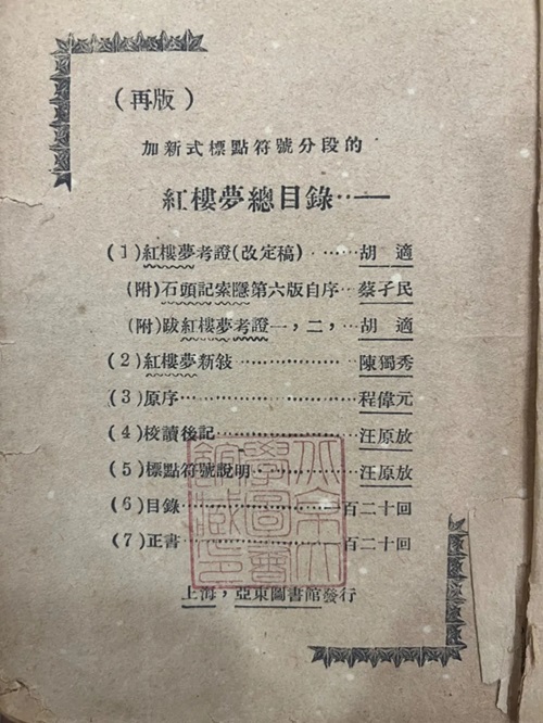 上海亞東圖書館新式標(biāo)點(diǎn)版《紅樓夢(mèng)》(1922年再版)