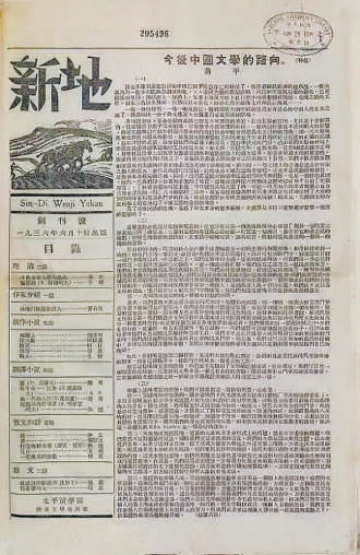 《新地》為清華文學(xué)會(huì)社刊,創(chuàng)刊于1936年6月10日。雖然其僅出3期即告終刊,但清晰地展露了社員試圖溝通世界文學(xué)、“展開一種新的文學(xué)運(yùn)動(dòng)”的積極努力。
