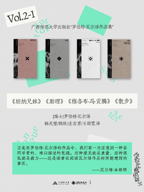 瓦爾澤在德語文學(xué)中有著至關(guān)重要的地位,他被認(rèn)為與卡夫卡和穆齊爾齊名,是現(xiàn)代德語文學(xué)的奠基人,但他在中文世界的引介一直不足。直到去年下半年,有四家出版社和出版公司先后推出了他的幾部重要作品的譯本,讓讀者可以一窺這位作家的文字和精神。