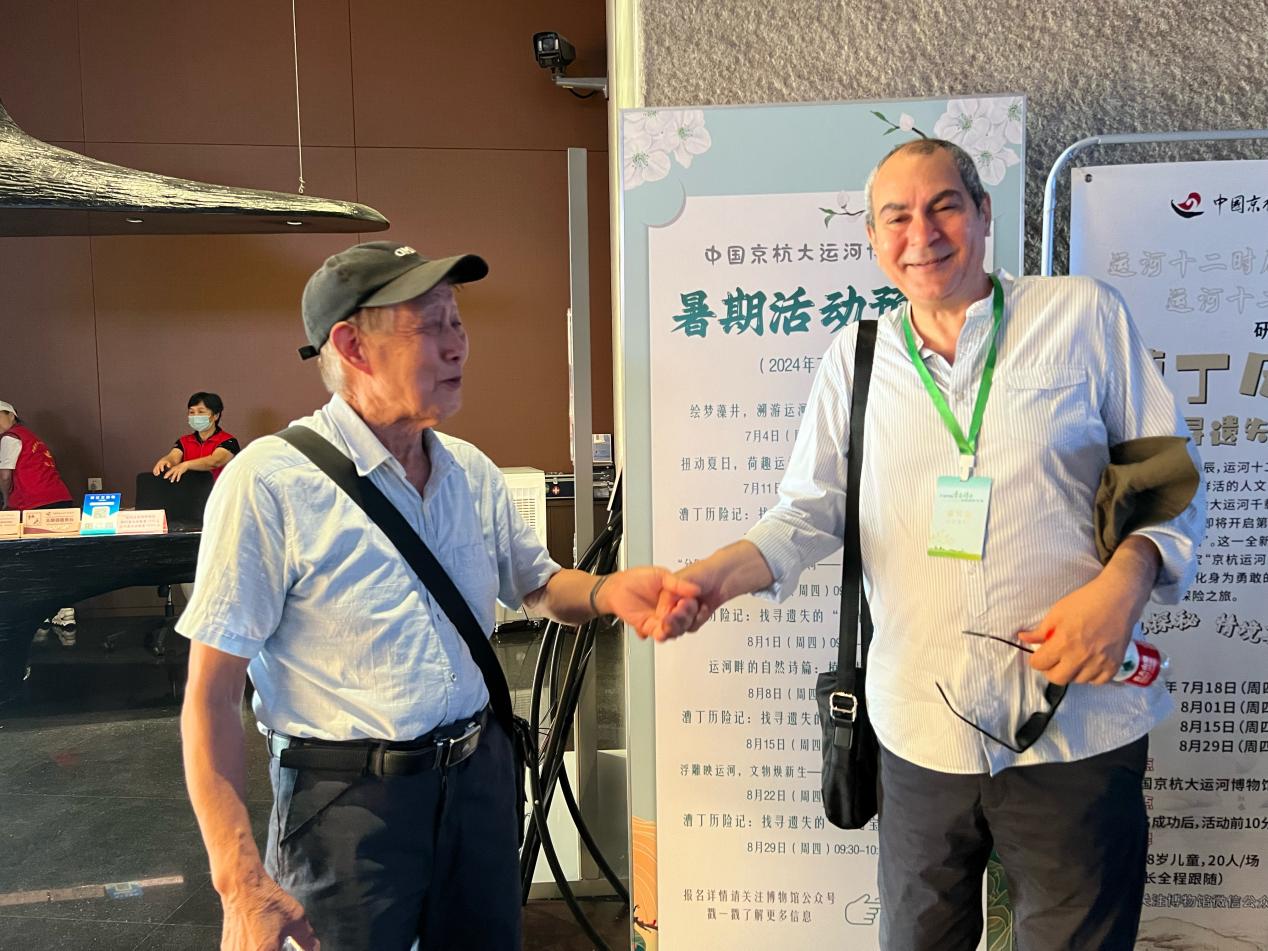 友誼流淌在中國(guó)畫家與阿聯(lián)酋詩(shī)人之間,也流淌在一位杭州老人與埃及詩(shī)人艾哈邁德·葉麥尼之間。與老伴一同來(lái)參觀大運(yùn)河博物館的杭州老人葉際邁對(duì)艾哈邁德表達(dá)了杭州人民的熱情歡迎:“杭州非常美麗,歡迎多多來(lái)中國(guó)!”這是艾哈邁德第一次參訪中國(guó),他感動(dòng)于當(dāng)?shù)厝说臒崆榕c友善,也對(duì)中國(guó)文化深有感觸:“埃及和中國(guó)一樣擁有古老燦爛的文明與歷史,中國(guó)人幸運(yùn)地一直傳承了自己的語(yǔ)言,相比之下,埃及則失去了自己的傳統(tǒng)語(yǔ)言,這是我們需要面對(duì)的問(wèn)題?!?/p>