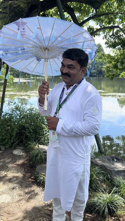 登島后,詩(shī)人們兵分兩路,一隊(duì)前往蘇白二公祠,拜謁兩位前輩詩(shī)人、“杭州老市長(zhǎng)”——蘇軾和白居易,聆聽這兩位著名中國(guó)古代詩(shī)人在西湖“山水功成”的經(jīng)歷和貢獻(xiàn),并向他們獻(xiàn)花致敬。在這一刻,詩(shī)歌讓大家穿越古今中外遇。而另一隊(duì)詩(shī)人則來(lái)到了著名的有百年歷史的西泠印社,在這里,他們親手篆刻了一枚屬于自己的印章,以最生動(dòng)的方式感受古代中國(guó)文人墨客的生活和雅興。返回的路上,印度詩(shī)人普里特威拉杰·陶爾撐著一把中國(guó)傳統(tǒng)樣式的傘,這并不是他買的紀(jì)念品,而是一位路過(guò)的女士送給他的禮物。陶爾非常驚喜,站在湖邊驕傲地向大家展示他收到的這份溫暖的禮物。
