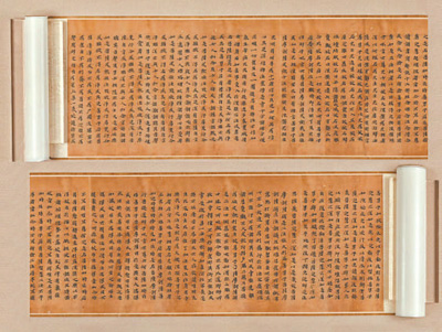 杭州館藏《大般涅槃經(jīng)》為殘卷,后人為它裝裱了卷軸。每行17字(個(gè)別為16字或18字),共計(jì)1447字。所抄內(nèi)容為北涼曇無(wú)讖譯《大般涅槃經(jīng)》卷三十一的部分文字。曇無(wú)讖是南北朝時(shí)期佛教高僧、譯經(jīng)師,出生于公元4世紀(jì)末的中天竺(今印度)。他自幼聰慧、悟性極高,“至年二十,頌大小乘經(jīng)二百余萬(wàn)言”,后輾轉(zhuǎn)西域多地鉆研佛學(xué)。他翻譯的眾多佛教文獻(xiàn)傳播甚廣,直接推動(dòng)了北涼佛教的發(fā)展,為中外文化交流作出了貢獻(xiàn)。