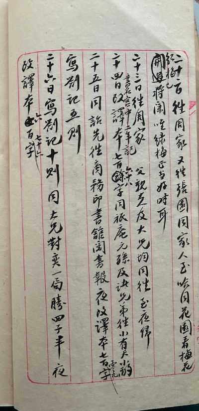 二月十二日。改譯本千一百字。同農(nóng)先、元孫、祗庵往文明雅集看棋。祗庵請(qǐng)至聚昌館吃飯。