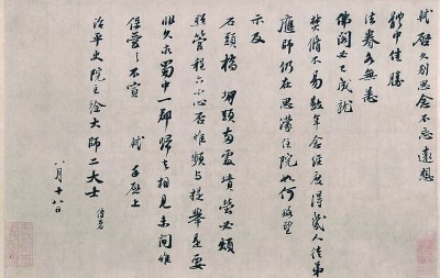 蘇軾書法的尚意,并不意味著放棄法度,而是對(duì)“法”的活用與改造,向“法”中注入新意,旨在表現(xiàn)自我的意趣、情感和個(gè)性,所以是“法中尚意”。此次展覽特意從故宮博物院借來蘇軾的《治平帖》,此帖字里行間洋溢著一股超脫世俗的寧靜與雅致,盡顯心境之平和與筆墨間靈動(dòng)飄逸之美。蘇軾曾言:“我書意造本無法,點(diǎn)畫信手煩推求?!贝酥械摹盁o法”,實(shí)則是強(qiáng)調(diào)在書法創(chuàng)作中,意境的營造與情感的抒發(fā)高于一切成法,而“煩推求”則是以一種輕松自如、不拘一格的態(tài)度,展現(xiàn)其書法藝術(shù)的自然流暢與隨心所欲。
