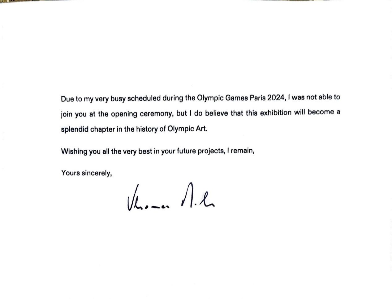 法國(guó)馬克龍總統(tǒng)委托總統(tǒng)府辦公廳主任發(fā)來賀信,對(duì)“奧林匹克美術(shù)大會(huì)”在巴黎的成功舉辦表示祝賀。法國(guó)造型藝術(shù)家協(xié)會(huì)主席雷米·艾融的致辭介紹了法國(guó)造型藝術(shù)家協(xié)會(huì)一直致力于推動(dòng)藝術(shù)的發(fā)展與交流,同時(shí)對(duì)“奧美大會(huì)”的開幕表達(dá)了由衷的祝賀。他認(rèn)為,藝術(shù)是無國(guó)界的語言,它能夠跨越地域、文化與種族的界限,觸動(dòng)每一個(gè)人的心靈。