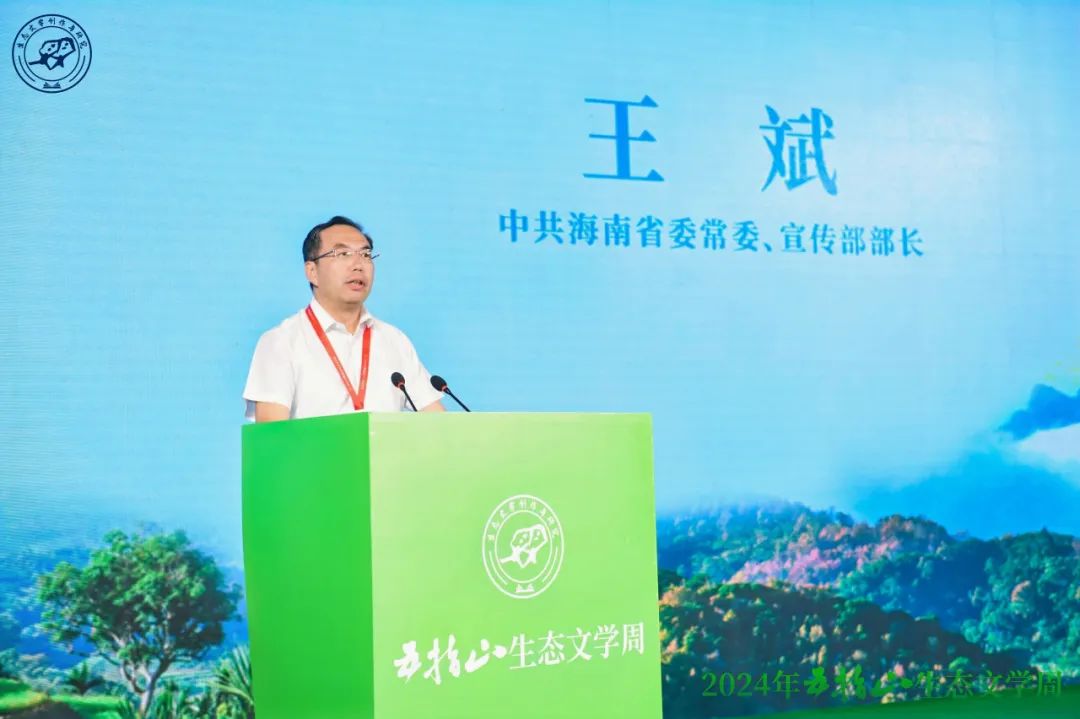 2024年8月15日是我國第二個“全國生態(tài)日”。當天,由中國作家協(xié)會、海南省委宣傳部指導(dǎo),中國作協(xié)社聯(lián)部、生態(tài)環(huán)境部宣傳教育司、自然資源部宣傳教育中心、海南省作協(xié)、中共五指山市委、五指山市人民政府共同主辦的2024年五指山“生態(tài)文學(xué)周”開幕。中國作協(xié)黨組成員、副主席、書記處書記邱華棟,中共海南省委常委、宣傳部部長王斌出席活動并講話。中國作協(xié)社聯(lián)部主任李曉東,生態(tài)環(huán)境部宣教司司長裴曉菲,自然資源部宣教中心黨委書記、副主任李航,中共五指山市委書記朱宏凌等出席活動。中國作協(xié)副主席張煒作書面致辭。張平、韓少功、老藤、王干、李舫、穆濤、朱輝、李元勝等知名作家、學(xué)者,以及海南省內(nèi)作家近200人齊聚于此,共話美麗中國建設(shè)。開幕式由海南省作協(xié)主席、天涯雜志社社長梅國云主持。