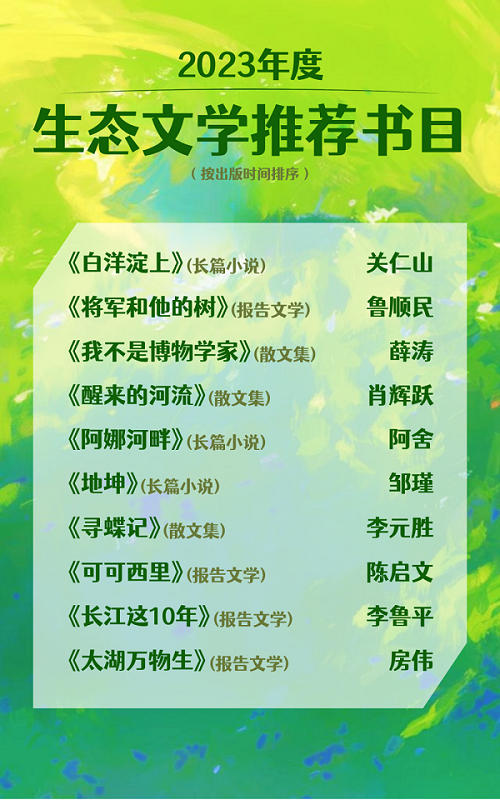 中國作協(xié)社聯(lián)部主任李曉東公布“2023年度生態(tài)文學(xué)推薦書目”
