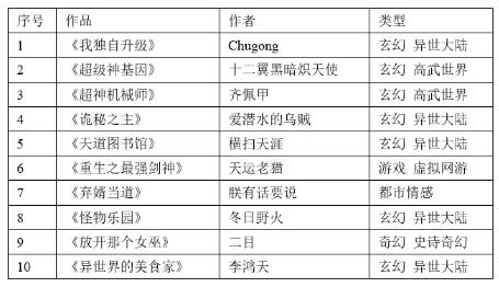 起點國際最受歡迎作品排行榜前十作品一覽