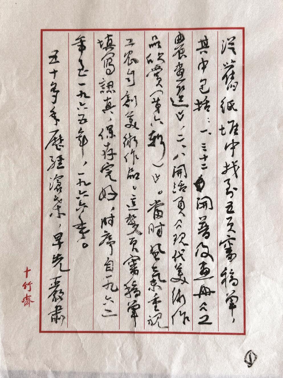 沈鵬先生似乎對(duì)書法、詩(shī)詞成就掩蓋了他的編輯業(yè)績(jī)很在意。那年人民美術(shù)出版社從北總布胡同32號(hào)臨時(shí)搬家到雙井富力中心,我最后查看搬家有無(wú)遺落時(shí),在辦公樓地下室一間屋內(nèi)地下廢紙堆中,發(fā)現(xiàn)兩個(gè)破損的牛皮紙袋,打開一看,是五十年前的審稿單,當(dāng)即翻閱一過,其中有沈鵬先生用毛筆和鋼筆寫的審批意見。一次我有機(jī)會(huì)去沈先生家,就帶給他。他翻看許久,臉色莊肅。數(shù)日后,讓人帶給我一封信(參見右圖。更多圖文請(qǐng)移步“文匯”App和“文匯筆會(huì)”微信公眾號(hào)):